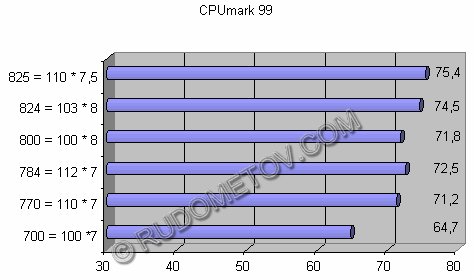 | Frequency of the processor = Frequency of the bus * a multiplier | CPUmark 99 | FPU WinMark |